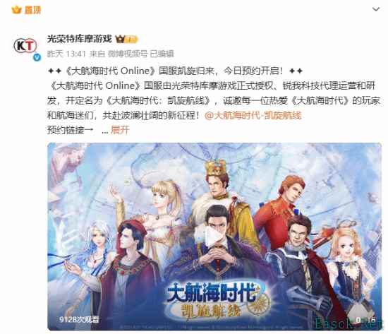 4月8日,光荣特库摩游戏微博发布消息,《大航海时代 Online》国服由锐我科技代理运营和研发,并定名为《大航海时代:凯旋航线》。