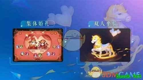 新一届的集体婚礼将在情人节期间举行,参加的玩家可以获得“同心永结”和“同心鸳谱”,放进个人空间的珍宝阁中,不仅可以永久珍藏,还可以让三界众生一起见证你们的浪漫哦。
