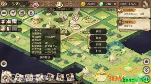 玩家可以把队伍调动到已经拥有的土地,让英雄在这片土地上进行训练,获取经验奖励,这是一个非常实用的选项,随着等级的不断提升,玩家可以获得的队伍总经验越多。