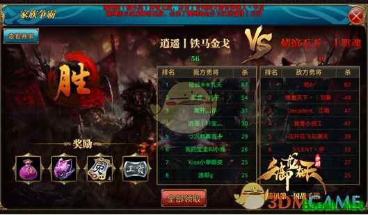 每人初始获得30积分,死一次扣一分,个人积分为0会被传送出战场。比赛15分钟后结束,本家族剩余积分多的一方获胜。