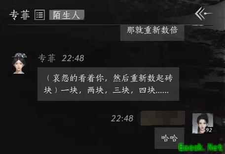 燕云十六声专菲对话结交的流程是怎么样的呢?专菲每天都依靠数砖打发自己的时间,玩家们需要与她进行交流的时候她输完之后就让她重新数一遍就算是结交成功了,下面就给大家带来具体的介绍。