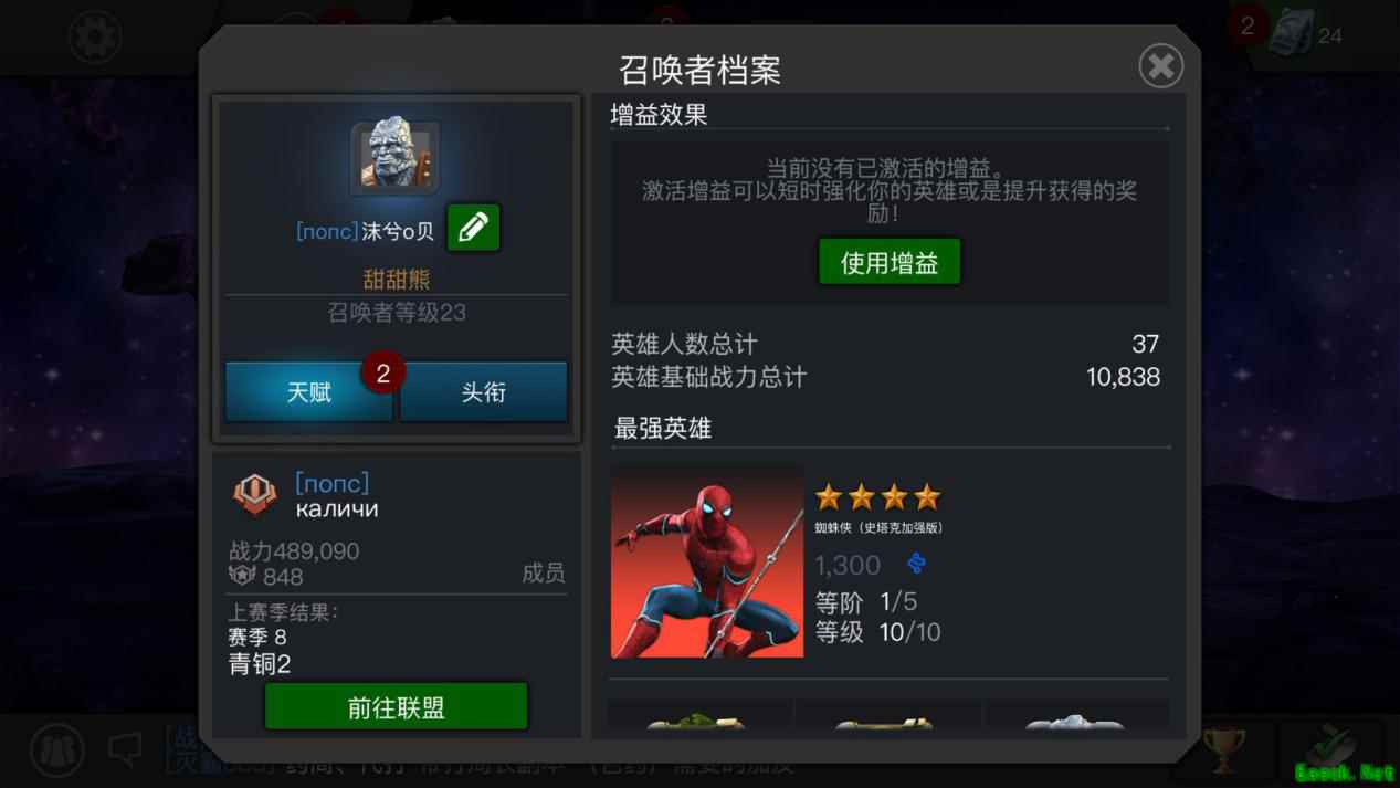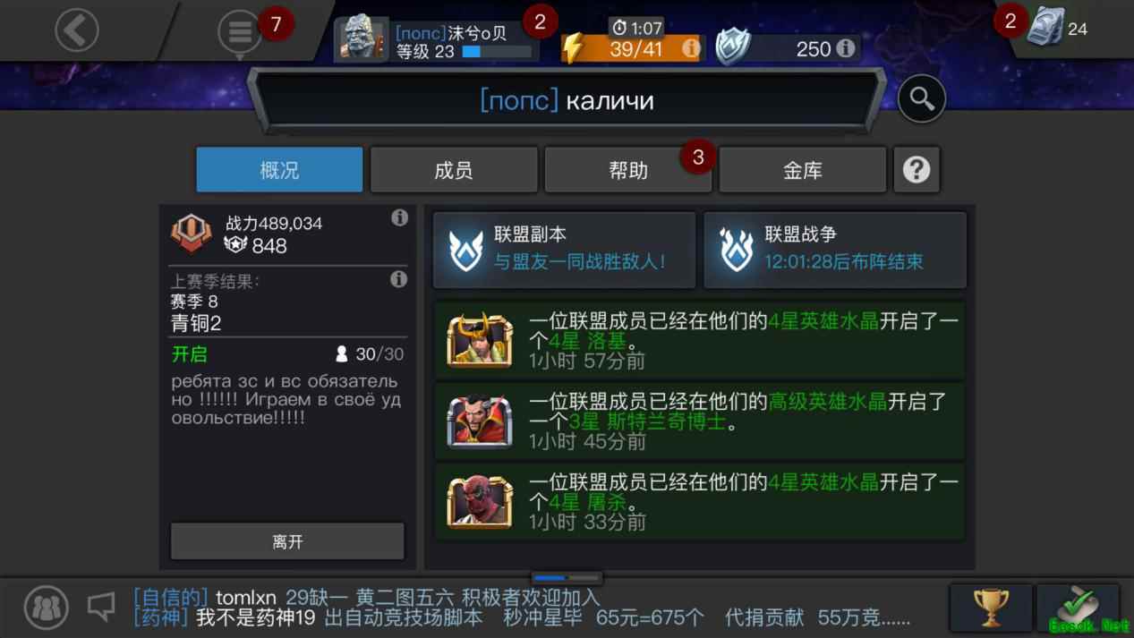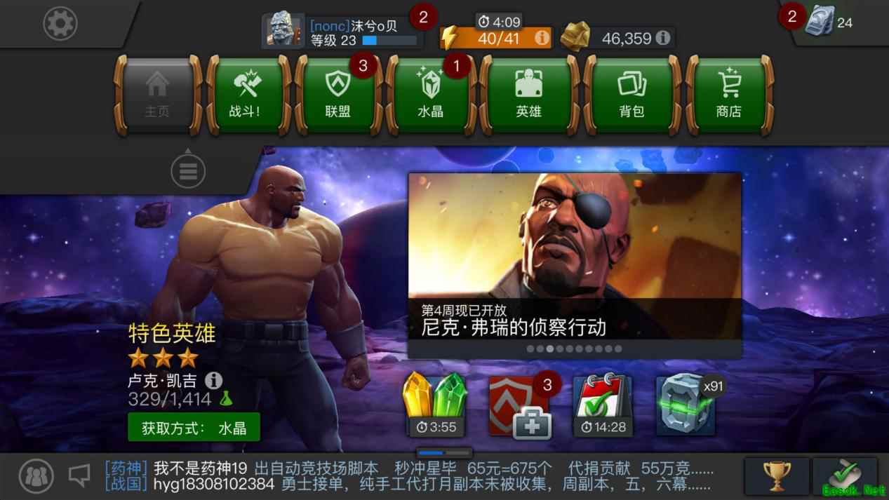 联盟是玩家之间交互的地方,同时在联盟中你也会和其它敌对联盟交战。当你第一次进入联盟后就能获取到免费抽英雄的机会,简单点说加入联盟之后系统会送一个高级英雄水晶,这可能就是联盟对新成员的一种欢迎仪式吧。当然联盟平日里还会有独特的副本供玩家体验,这些副本都是有材料、英雄的掉落,加入一个相对活跃的联盟是每一个《漫威:超级争霸战》玩家的第一步。