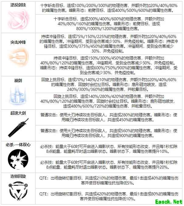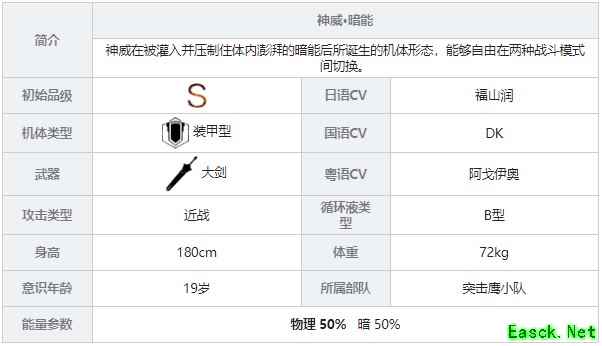 评价:神威暗能是重能的一个全面升级版,无论是输出,防御,都要超过重能不少。神威暗能并不是一个依靠普通攻击造成伤害的角色,应该这么说神威暗能的输出更倾向于技能的衔接方面,普通攻击只能用于填补技能的空窗期。独有的暗属性连招能够让神威暗能的性能发挥到极致。