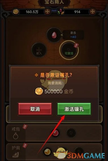 3、在宝石商人页面,找到可激活的槽孔,继续点击下方的激活选项;