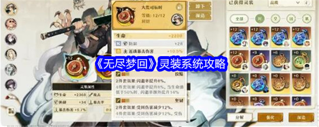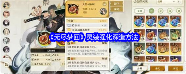 无尽梦回游戏灵装系统,也就是熟悉的装备系统!消耗强化材料提升灵装等级,强化可以增强灵装的主属性词条,接下来给大家带来了《无尽梦回》灵装强化深造方法! 《无尽梦回》灵装强化深造方法一、强化消耗强化材料提升灵装等级,已强化灵装作为培养材料时能够完全继承9级以下的经验,超过9级的部分会以一定比例折算。强化可以增强灵装的主属性词条,并在特定等级激活副词条,副属性词条不会随灵装的强化等级提升而得到数值、品质...