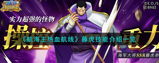 航海王热血航线是一款十分火爆的手游,其中新传奇伙伴藤虎于10月19日上线航海王热血航线,需要通过活动限定卡池获取。那么航海王热血航线藤虎的技能究竟是什么呢?希望对感兴趣的玩家有所帮助,大家一起看一看吧。 航海王热血航线藤虎技能◆普通技能1「居合」以高超的剑术向前快速突进拔刀斩击。※长按会改变技能形态。※命中会刷新追加技【重力场·加重】冷却时间。◇追加技能1「重力场·加重」:在敌方脚下生成一个加重场...