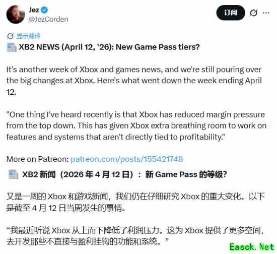 近期,一位长期关注Xbox业务的资深行业记者在其最新播客节目中透露,微软已适当下调Xbox部门的短期利润目标,此举旨在为团队释放更多资源与决策弹性,使其能够更专注于用户体验提升、系统功能创新以及长期生态建设等非即时变现方向的工作。这一调整被广泛解读为Xbox当前战略演进的重要体现。在现任首席执行官阿莎夏尔主导下,Xbox已持续推进组织结构优化与业务重心重构。此次考核导向的调整,也被视为面向下一代主...