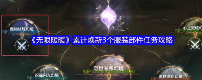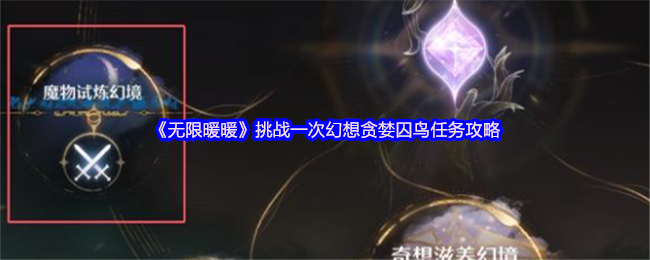 无限暖暖1.4版本春野与繁花第二天有一个任务是,挑战一次幻想贪婪囚鸟,该任务如何做呢?下面是小编给大家带来的《无限暖暖》挑战一次幻想贪婪囚鸟任务攻略,感兴趣的小伙伴们一起来看看吧。>>>相关推荐:《无限暖暖》1.4版本春野与繁花活动攻略 《无限暖暖》挑战一次幻想贪婪囚鸟任务攻略1、到任意传送点,点击幻境挑战 2、选择魔物试炼幻境 3、选择下面的贪婪囚鸟,快速完成也算 以上就是《无限暖暖》挑战一次...