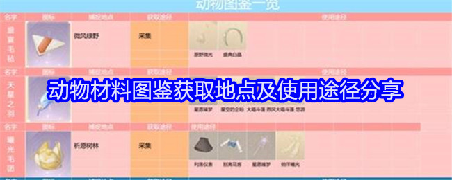 无限暖暖是一款结合了换装、冒险和模拟经营等多种元素的游戏,游戏里有各种小动物,我们可以通过捕捉和清洁获取到各种材料,这材料可以制作出不同的服装饰品,下面是小编给大家带来的《无限暖暖》动物材料图鉴获取地点及使用途径分享,感兴趣的小伙伴们一起来看看吧。 《无限暖暖》动物材料图鉴获取地点及使用途径分享图文主要是针对无限暖暖中动物类资源的图鉴: 以上就是《无限暖暖》动物材料图鉴获取地点及使用途径分享...