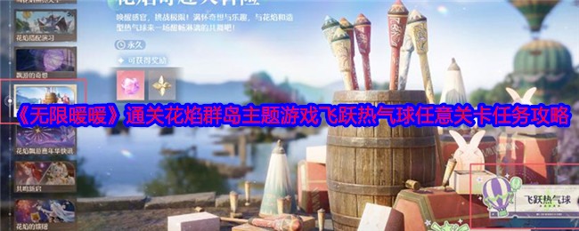无限暖暖琵琶套第九天有一个任务是,通关花焰群岛主题游戏飞跃热气球任意关卡,很多玩家想知道该任务怎么做?下面是小编给大家带来的《无限暖暖》通关花焰群岛主题游戏飞跃热气球任意关卡任务攻略,感兴趣的小伙伴们一起来看看吧。>>>>更多推荐:《无限暖暖》琵琶套弦歌共岁任务攻略大全 《无限暖暖》通关花焰群岛主题游戏飞跃热气球任意关卡任务攻略1、飞跃热气球主题游戏需要做完花焰群岛风物任务才能解锁2、点击活动大...