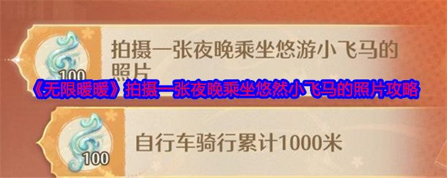 无限暖暖琵琶套有一个任务是,拍摄一张夜晚乘坐悠然小飞马的照片,很多玩家不知道任务怎么做,下面是小编给大家带来的《无限暖暖》拍摄一张夜晚乘坐悠然小飞马的照片攻略,感兴趣的小伙伴们一起来看看吧。>>>>更多推荐:《无限暖暖》琵琶套弦歌共岁任务攻略大全 《无限暖暖》拍摄一张夜晚乘坐悠然小飞马的照片攻略1、使用美鸭梨,美鸭梨快跑,把世界调到夜晚22点以后2、悠然小飞马位置如下图所示: 3、到了以后和NP...