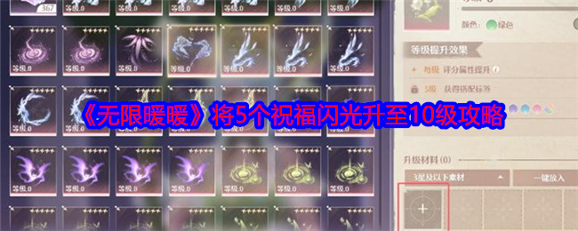 无限暖暖将5个祝福闪光升至10级怎么做?无限暖暖晴日时光第三天有一个任务是,将5个祝福闪光升至10级,下面是小编给大家带来的《无限暖暖》将5个祝福闪光升至10级攻略,感兴趣的小伙伴们一起来看看吧。>>>更多推荐:《无限暖暖》晴日时光任务攻略大全 《无限暖暖》将5个祝福闪光升至10级攻略将5个祝福闪光升至10级 1、在传送点幻境挑战可以看到祝福闪光幻境,挑战扫荡可以获得祝福闪光 2、点击美鸭梨,找...