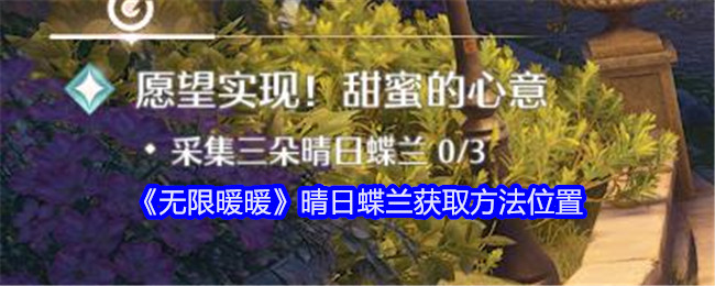 无限暖暖有一个任务需要采集三朵晴日蝶兰,晴日蝶兰能够制作很多物品,包含远方的遥想、简练风度、星愿璀梦、顶呱呱、灼炎烈日、花语希望、大喵斗篷轻纱!那么晴日蝶兰怎么获得呢?下面小编给大家带来了《无限暖暖》晴日蝶兰获取方法位置,感兴趣的小伙伴们一起来看看吧。《无限暖暖》晴日蝶兰获取方法位置1、如果开了图鉴,点击地图,点击左下角的追踪,就可以追踪晴日蝶兰2、如果没开图鉴,晴天到下图所示位置可以找到:(花愿...