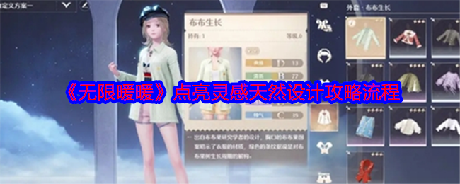 无限暖暖点亮灵感天然设计任务怎么完成?点亮灵感天然设计是游戏中的见闻任务之一,大家完成可以获得20钻石和百朵小棉菊*图纸,下面给大家带来了《无限暖暖》点亮灵感天然设计攻略流程分享,一起了解一下吧!《无限暖暖》点亮灵感天然设计攻略流程晴朗白天(5点-21点)的捕虫小屋附近,薇莉正在构思如何让衣服直接体现出制作材料,换一件装扮或许可以给她一些灵感。任务服装:布布生长(花愿镇的马尔克斯服装店)见闻奖励:...
