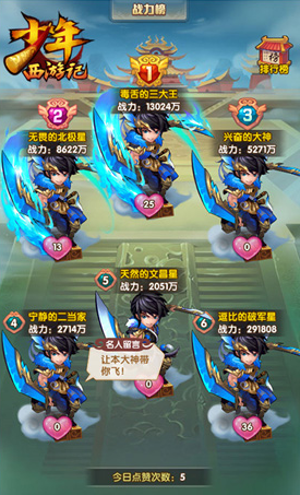 《少年西游记》跨服战玩法大家都非常喜欢的一个玩法,特别是对自己武将实力有信心的小伙伴,非常好的一个战斗机会,可以战胜更多的人,下面就来看看跨服战玩法介绍吧。 跨服战玩法介绍 每周的周一0点到周五的24点都是开启时间,玩家可以在这个周期中参与。在激战南天门活动开启的周期内,参与活动,然后系统会自动匹配和其他服务器的玩家比武决出名次,直至决出最终的第一名。首先呢三个阵营要先选择一个阵营加入,每次匹配会...