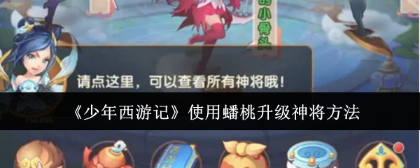少年西游记怎么使用蟠桃升级神将?游戏里每位神将的技能和属性效果不同,大家可以在战斗的时候任意选择,也可以对神将进行升级,在神将的升级玩法中可以使用蟠桃进行升级,小编整理了少年西游记使用蟠桃升级神将方法,一起来看看吧。《少年西游记》使用蟠桃升级神将方法答:游戏主页神将-升级-使用蟠桃点击确定即可进行升级。*除了使用蟠桃升级外,还可以系统、西游真经等进行升级。1、首先我们进入游戏,然后点击左下角的神将...