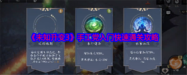 《未知:升变3》是一款经典的魔兽RPG防守图,同时增加了大量的Roguelike玩法。玩家每局都需要搭配不同的职业、装备、技能、法宝、天赋来爽快割草,击杀BOSS。下面是小编给大家带来的《未知升变3》新人攻略,感兴趣的小伙伴们一起来看看吧。 《未知升变3》新人攻略神识职业:谋士(青皮),七仙女,诸葛亮(花木兰打boss),嫦娥(有天凤换卷帘),天凤单被动:赤焰灼热 双被动:赤焰灼热\精神异常(精...