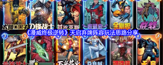 在漫威终极逆转游戏中玩家需精心策划卡组构成,考虑英雄间的能力协同、卡牌的组合效益以及如何有效利用每张卡的特殊技能。下面是小编给大家带来的《漫威终极逆转》天启弃牌阵容玩法思路分享,感兴趣的小伙伴们一起来看看吧。 《漫威终极逆转》天启弃牌阵容玩法思路分享【天启弃牌】阵容玩法卡组构成: 以天启为核心的弃牌卡组,通过不断弃牌达成战力增长的目的。 核心卡组: 玩法思路: 第1回合:刀锋战士(右手第一张是金刚...