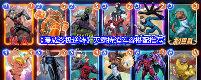 在漫威终极逆转游戏中玩家需精心策划卡组构成,考虑英雄间的能力协同、卡牌的组合效益以及如何有效利用每张卡的特殊技能。下面是小编给大家带来的《漫威终极逆转》灭霸持续阵容搭配推荐,感兴趣的小伙伴们一起来看看吧。 《漫威终极逆转》灭霸持续阵容搭配推荐卡组构成: 灭霸的宝石是优秀的buff载体,通过卡扎尔、蓝惊奇、光谱等卡进行增强,拿下你的对手。 核心卡组: 玩法思路: 第1回合:蚁人>宝石第2回合:心灵宝...