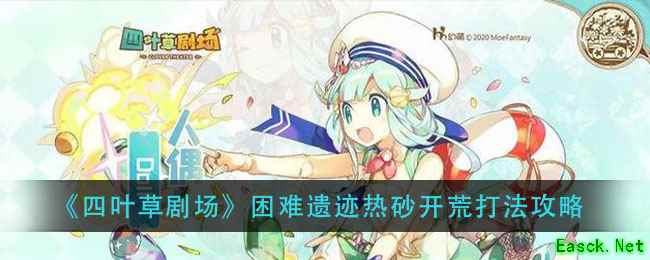 四叶草剧场困难遗迹热砂阵容推荐?困难遗迹热砂的难度非常的高,很多玩家都还在开荒的路上,都希望能早日通关。接下来就让小编给大家带来《四叶草剧场》困难遗迹热砂开荒打法攻略,感兴趣的小伙伴一起来看看吧。 《四叶草剧场》困难遗迹热砂开荒打法攻略1,所需剧照 开幕剧照:愿你好梦1,开幕魅惑降低敌方攻击力 高潮剧照:对决,主线送的回血神剧照 闭幕剧照:胜者为王3,完美应对单体怪 2,阵容及所需属性 阵容:2T...