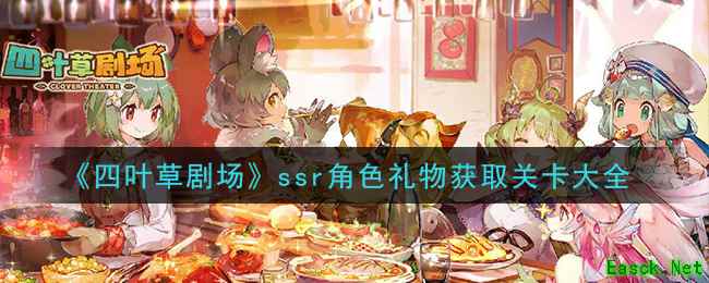 四叶草剧场游戏中ssr角色的礼物可以在游戏关卡里获取。相信有很多小伙伴不是很清楚ssr角色礼物获取关卡有哪些,接下来就让小编给大家带来《四叶草剧场》ssr角色礼物获取关卡大全,感兴趣的小伙伴一起来看看吧。《四叶草剧场》ssr角色礼物获取关卡大全如下所示:小伙伴们可以根据自己的需求去选择哦~以上就是小编给大家带来的《四叶草剧场》ssr角色礼物获取关卡大全的全部内容了,更多手游攻略请关注易采游戏网!...