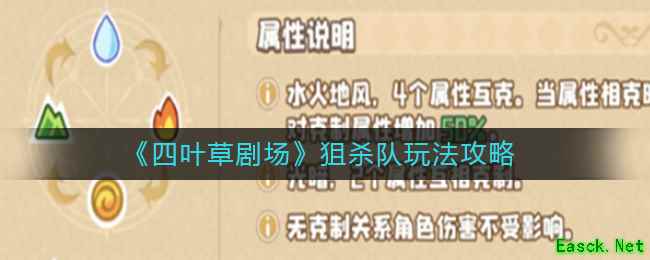 四叶草剧场狙杀队怎么玩?《四叶草剧场》游戏中狙杀队是一个新的玩法,但是很多玩家不知道怎么玩,那么今天小编就给大家介绍一下四叶草剧场狙杀队玩法攻略,感兴趣的小伙伴不要错过了。《四叶草剧场》狙杀队玩法攻略阵容目标:前2回合,狙杀敌方输出,造成减员。阵容特色:标记,高速,爆发,成本低特别说明:本人浪费了大量体力刷碎片,队伍没成型且练度不高,尚未完全发挥狙杀阵容实力。必要剧照:宿敌1 必要的人物:SR希萝...