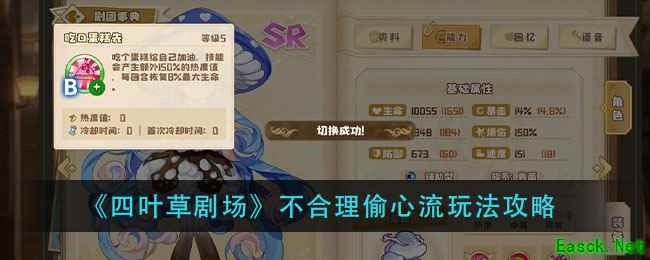 四叶草剧场不合理偷心流怎么玩?在游戏内很多玩家都想知道,不合理偷心流是怎么玩的。接下来就让小编给大家带来《四叶草剧场》不合理偷心流玩法攻略,感兴趣的小伙伴一起来看看吧。 《四叶草剧场》不合理偷心流玩法攻略关键:不合理报酬1,偷心盗贼团,蓝蘑菇以及哈露露。 攻击方式: 叠加异常状态使不合理报酬压制敌方生命,也可通过携带输出角色的方式压制敌方生命,第3回合连续触发两次偷心瞬杀。例子: 大厨,水史莱姆,...