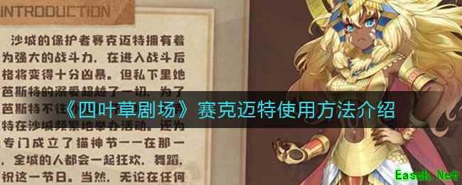 四叶草剧场赛克迈特怎么使用?《四叶草剧场》游戏中赛克迈特是一个天赋技能都十分不错的角色,那么要怎样使用发挥的最好呢?今天小编就给大家介绍一下四叶草剧场赛克迈特使用方法,有需要的小伙伴不要错过了。《四叶草剧场》赛克迈特使用方法介绍1,在PVE以及宿敌被禁用后的竞技场中,狮子可以大放异彩,靠奥义技能打出5个暴击伤害痛击对手,再用特殊技能或狂怒来收割战场。2,在阵容选择上,可以选择一些生存能力相对较差的...