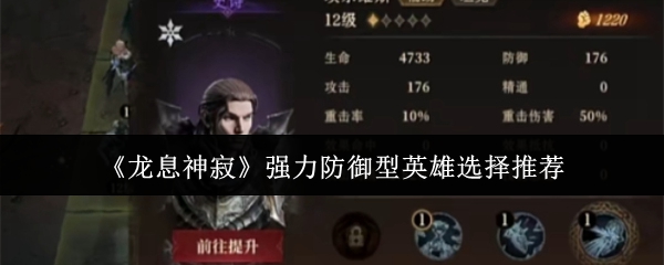 龙息神寂强力防御型英雄怎么选?在龙息神寂中,选择最强防御型英雄是非常重要的,因为防御型英雄能够为团队提供强大的生存能力和支援。根据不同英雄的特点,可以根据战斗场景来选择最合适的防御型英雄。以下是几个强力防御型英雄的推荐。《龙息神寂》强力防御型英雄选择推荐1、厄尔丹(毒属性)特点:队长技能:提升所有友方目标45%防御,适合提升整体防御。被动技能:有机率对敌方造成攻击力降低状态,减少敌人的输出。战技:...