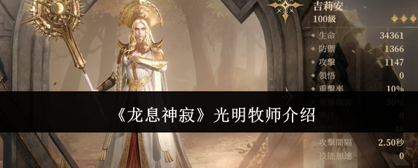 龙息神寂光明牧师是谁?这是不少新手们都很疑惑的事情了,光明牧师的是游戏明光军团之中的一个角色,她拥有强大的治疗能力,本次小编就给大家专门介绍一下光明牧师的玩法和技巧供各位参考,希望这一次内容可以对大家有所帮助。《龙息神寂》光明牧师介绍光明牧师其实是游戏当中的吉莉安,她属于光明军团当中的一员,由于它强大的辅助能力和治疗能力,在辅助角色当中,隶属于光属性T0级别。光明牧师在游戏内总共有三个技能,第一个...