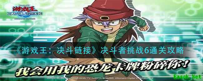《游戏王:决斗链接》当中很多玩家都想知道,决斗者挑战6的通关方法是什么。下面就让小编给大家带来游戏王决斗链接决斗者挑战6通关攻略,感兴趣的小伙伴们一起来看看吧。 《游戏王:决斗链接》决斗者挑战6通关攻略思路方法如下 魔兽怀柔三张,上级绿狒狒(保留鼯鼠),鼯鼠碰瓷,特招黄狒狒在对面场上特招鼯鼠,两只狒狒攻击两只鼯鼠,结束 以上就是《游戏王:决斗链接》决斗者挑战6通关攻略的全部内容了,更多手游攻略请关...