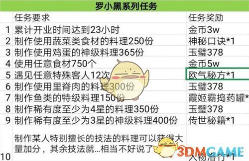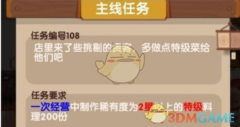 在爆炒江湖手游中任务108该怎么完成呢?游戏中关于主线任务108应该怎么制作稀有料理,有些小伙伴不知道该怎么完成,那么想知道完成方法的小伙伴就跟随小编一起来看看吧。爆炒江湖任务108攻略:主线 108号任务:“一次经营” 制作稀有度为 “2星以上” “特级” 料理 “200份”游戏天数要求:24天(有需求签到菜谱)厨师等级要求:3阶 满级 羽十六 (初始厨师,5五香果,5暖石<通过制作>)2阶 满...