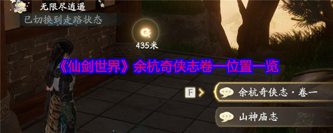 仙剑世界余杭奇侠志卷一在哪里?仙剑世界地图中有许多可以交互探索的地方,可以完成探索度,很多玩家没有找到余杭奇侠志·卷一,下面是小编给大家带来的《仙剑世界》余杭奇侠志卷一位置一览,感兴趣的小伙伴们一起来看看吧。 《仙剑世界》余杭奇侠志卷一位置一览1、余杭奇侠志卷一在余杭镇山神庙门口,位置如下图所示: 2、两本书都在门口3、坐标:余杭山神庙 17440,5121以上就是小编整理带来的《仙剑世界》余杭奇...