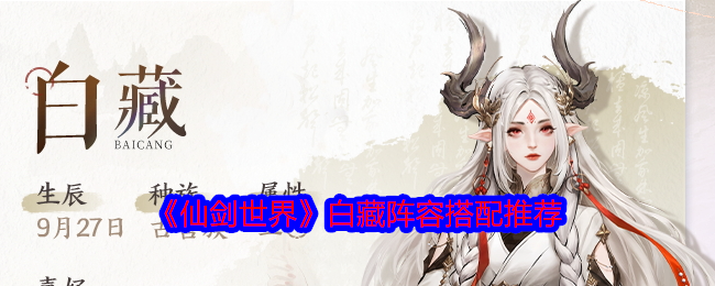 本篇给大家带来《仙剑世界》白藏阵容搭配推荐:推荐阵容一:白藏 + 赵灵儿 + 主C(如李逍遥/王小虎)。推荐阵容二:白藏 + 风系辅助(如长风豹) + 主C。推荐阵容三:白藏 + 火系输出(如小虎) + 风系充电宝(如万彩妖蝶)。《仙剑世界》白藏阵容搭配推荐推荐阵容一:白藏 + 赵灵儿 + 主C(如李逍遥/王小虎)1、白藏:通过大招聚怪,将敌人聚集在一起,为主C创造良好的输出环境。2、赵灵儿:提供...