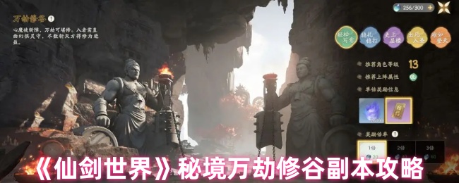 仙剑世界万劫修谷副本怎么打,万劫修谷在游戏中被玩家称为经验副本,每次的通关都可以获得大量的经验值奖励还有其他的资源获取,本文将为玩家们详细介绍万劫修谷副本的核心玩法、战斗策略及最优阵容搭配,帮助玩家获得更多的资源提升角色战力。《仙剑世界》秘境万劫修谷副本攻略:一、副本位置位置坐标:苏州城 16923,6661快捷进入:【秘境】➡【修行】➡【万劫修谷】➡【传送】注意:副本挑战受等级限制,仅可在达到推...