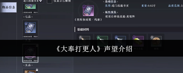 大奉打更人声望是什么?游戏当中,玩家也可以直接进入到声望商城,消耗声望来兑换资源物资,小编本次就给大家带来了大奉打更人手游声望的全部解析供大家参考,希望这期内容可以帮到大家。《大奉打更人》声望介绍声望在游戏当中不仅可以用于兑换基础道具,高声望的玩家还能够开启更多的商城玩法,例如玩家在主城区中的声望达到一万点以上时,就可以开通金明楼的当铺,在当铺中,玩家可以收取所有的高属性值装备,不止如此,声望值越...