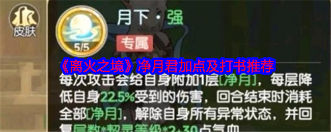 在离火之境游戏中,净月君是65级契灵虽然是普通宝宝,但是拥有堪比神兽的强度,并且是离火首个8技能契灵,是一个自得打书培养的宝宝,下面是《离火之境》净月君加点及打书推荐,需要的可以参考一下! 《离火之境》净月君加点及打书推荐相信大家看到过一些防踩坑攻略,里面经常会提到一点就是,低级唤灵币的留存。那么我们为什么要节省这些低级召唤币呢?除了后面要做每个玩家必备的骰子,就是为了这个净月君。净月君是游戏中最...
