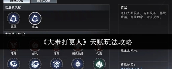 大奉打更人天赋怎么玩?各位要是想以一种更为直观地方式弄懂该玩法,可来看看这份大奉打更人手游天赋玩法攻略,它能帮各位更好地去理解天赋玩法的一切,让自己彻底玩转该功能。《大奉打更人》天赋玩法攻略游戏里的天赋功能由成就天赋和随机天赋这两部分构成,当玩家们完成税银案的主线后,就能开启该功能。其中成就天赋主要通过完成游戏内的成就来解锁,并且每一种天赋都有十分详细的获取方法,玩家们若是在里面发现了自己所需要的...