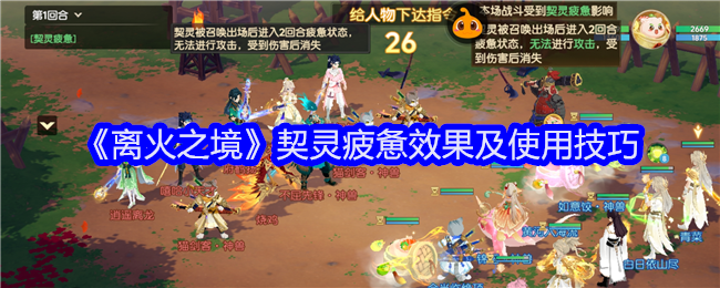 离火之境契灵疲惫怎么用?游戏中使用【契灵疲惫】指令,契灵被召唤出场后进入2回合疲惫状态无法进行攻击,受到伤害后消失。那么在斗技时我们如何使用这项指令呢?下面是《离火之境》契灵疲惫效果及使用技巧分享,希望对大家有所帮助!>>>《离火之境》禁药效果及使用技巧 >>>《离火之境》禁锢效果及使用技巧 《离火之境》契灵疲惫效果及使用技巧契灵疲惫效果:契灵被召唤出场后进入2回合疲惫状态无法进行攻击,受到伤害...