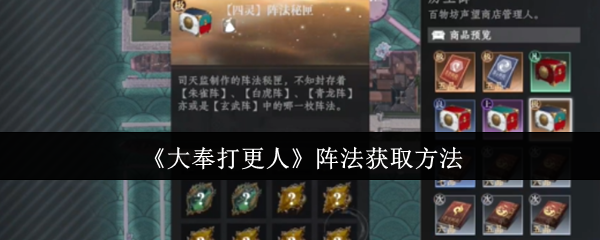 大奉打更人阵法怎么获取?大奉打更人玩家回忆到一个架空的古代武侠世界,可以扮演成小说里的角色,不断在这个大世界里,展开各种紧张激烈的对战,次对战除了直接使用角色的各项技能之外,还可以借助阵法提升战斗力,大奉打更人阵法获取方法,会在下面分享出来,假如想让自己有更强的战斗能力,阵法都是必不可少的。《大奉打更人》阵法获取方法想要在游戏里获取阵法,玩家就可以在每天整点的时候,前往地图中和boss对战,击败这...