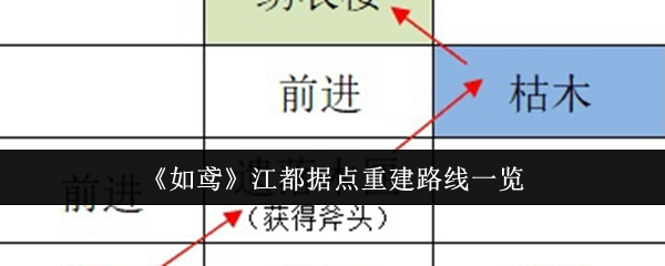 如鸢江都据点重建路线是什么?江都据点需要玩家爵位等级最少在30级及以上,并且通关主线4-12才能解锁。很多新手玩家不知道江都据点重建路线是什么,下面小编给大家整理了如鸢江都据点重建路线一览,一起看看吧。 《如鸢》江都据点重建路线一览答:具体重建路线可以参考下文一、解锁条件 1、爵位等级最少30级及以上2、通关主线4-12二、重建路线一览 1、渡口:前进-前进-击败强盗-西渡口-前进-击败强盗-瓜洲...