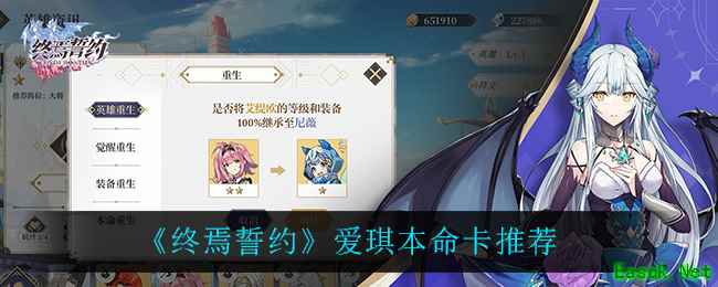 在终焉誓约中爱琪是一位元素增伤的坦克角色,很多小伙伴都很想知道爱琪应该用什么本命卡,今天小编给大家带来了《终焉誓约》爱琪本命卡推荐。感兴趣的小伙伴一起来看看吧,希望可以帮助到大家。《终焉誓约》爱琪本命卡推荐本命推荐:仙鹿座·维达尔1、本命简介:每次攻击概率回复生命值。2、非常契合爱琪的作战手法“拖,就硬拖”,借助血量持续回复来完成续航工作,实现生存。以上就是小编整理的关于《终焉誓约》爱琪本命卡推荐...