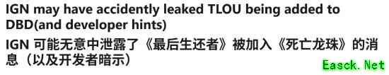 近日,据一名Reddit论坛用户爆料,IGN在一篇回顾《黎明杀机》十年发展历程的文章中,特意提及了尚未加入游戏的《最后生还者》IP,并将其与其他已实装的联动内容并列提及,随后又迅速改口,表示这并非泄密。值得一提的是,IGN此前曾在官方正式公布前数小时,提前泄露《黎明杀机》与鬼娃恰吉的联动内容,此番操作让不少玩家认为此次消息可信度极高。除此之外,开发商Behaviour Interactive也在多...
