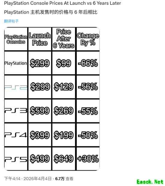 近日,一张历代PlayStation主机发售价与6年后价格的对比图在海外社区引发热议,PS5成为系列史上唯一一款发售6年后价格不跌反涨的主机。这一反常走势彻底打破了索尼主机“发售多年后持续降价”的行业惯例,也让玩家纷纷吐槽。有网友玩梗调侃:“照这个趋势,PS6首发999美元,6年后要卖到1499美元了”,还有玩家补刀:“不如再统计下6年后各主机的游戏数量对比”。PS5的涨价走势彻底打破了索尼主机的...