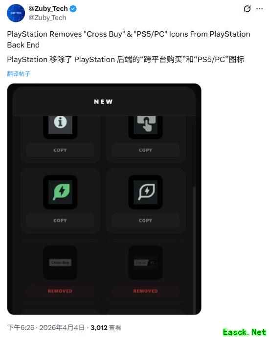 此前我们报道,索尼旗下第一方工作室未来将只开发独占游戏的相关介绍,今日,据长期关注PlayStation平台的消息人士人@Zuby_Tech爆料称,索尼目前已从PS后端移除了“跨平台购买(Cross-Buy)”与“PS5/PC”的相关图标。这两个标识在去年11月泄露时,曾引发玩家对索尼PC平台战略升级的猜测,如今图标被删,相关猜想也彻底落空。这一消息也进一步证实了索尼重回PS主机独占的传闻,你如何...