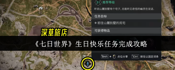七日世界生日快乐任务怎么完成?由于很多新手在过这一支线的时候失败,不知道生日快乐任务怎么做,所以下面的任务攻略就来讲述一下整个任务的流程,让大家能依照着去完成,从而顺利领取任务奖励,不知道该怎么做的玩家赶紧接着往下看吧。《七日世界》生日快乐任务完成攻略首先我们先前往深草旅店,在旅店的接取地点我们能看到一个精英怪和几个小怪在屋子的外面,其中的小怪甚至还会放出无人机来对我们攻击,由于这里怪的等级大多都...