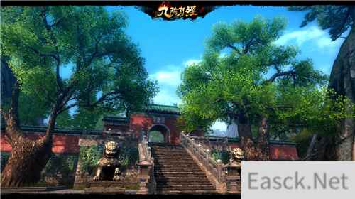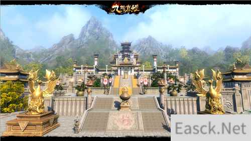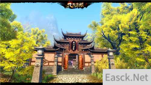 随后,江湖风起云涌,华山派、长风镖局等隐世门派相继出世。对称美在它们的建筑上有了进一步的展现,整座门派有了对称的内在衬托,显得古典又不失恢宏。
