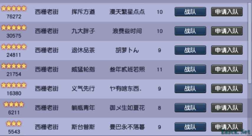 除此之外,西栅老街精锐组、神威组和天科组的人数也比较多,组队难度较低。