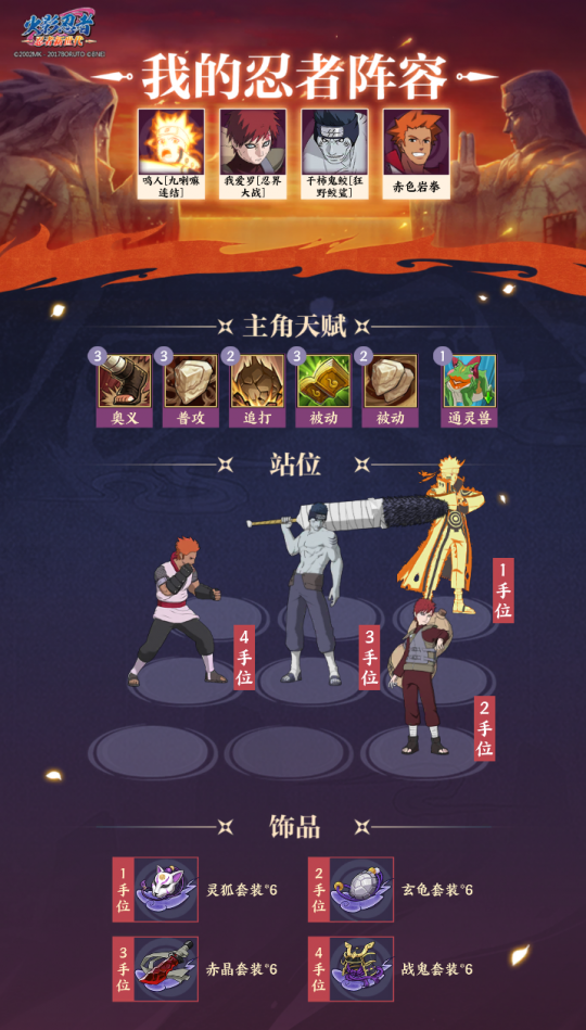 1、以上阵容仅供参考,适用难度不同,需要根据自己的战力、所拥有的忍者进行合理搭配和选择;