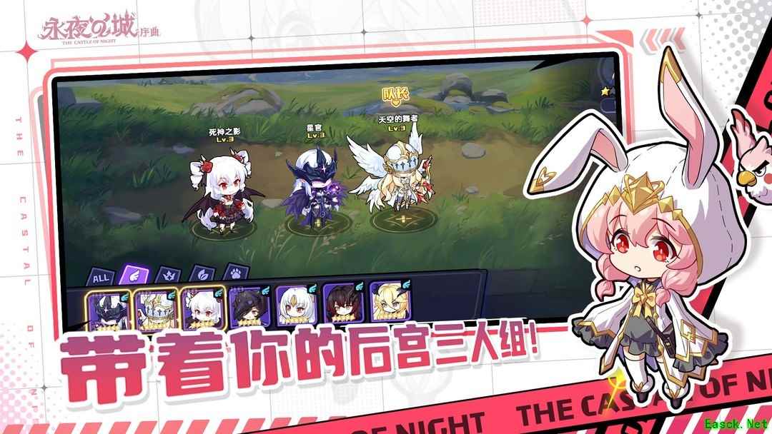 这是一款剑与魔法世界背景下的游戏,人类、精灵等种族共存。命运女神赠人类光明与黑暗,日落教会创立后教义变质。永夜之城随之诞生,城主拯救被光明遗弃者。游戏玩法为Rougelike+模拟经营+回合制,可挑选三人小组带传家宝探索迷宫、规划建筑区域、选择特定选项获取奇怪道具、集齐套装拼图后选祝福路线与BOSS战斗。版本内容容量有限,如角色不超16个、装备不超58件等。